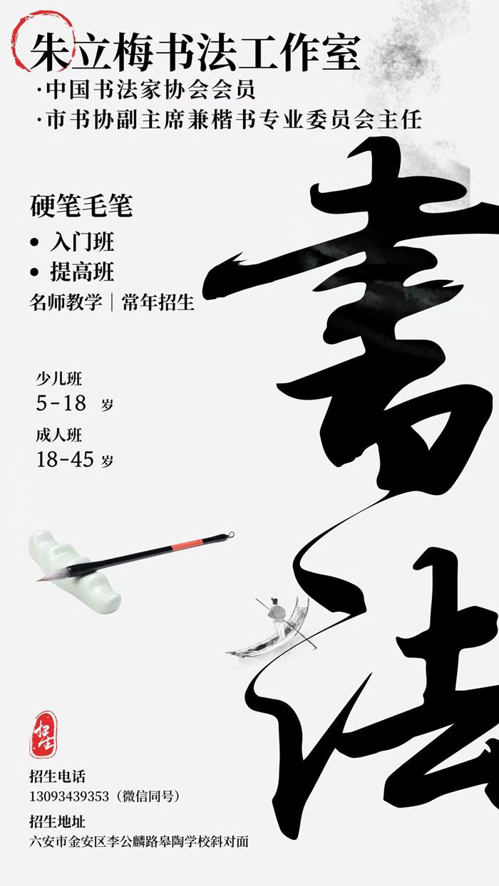5、成人书法提高班、国展集训班、书法高考班。请咨询朱老师,电话:13093439353